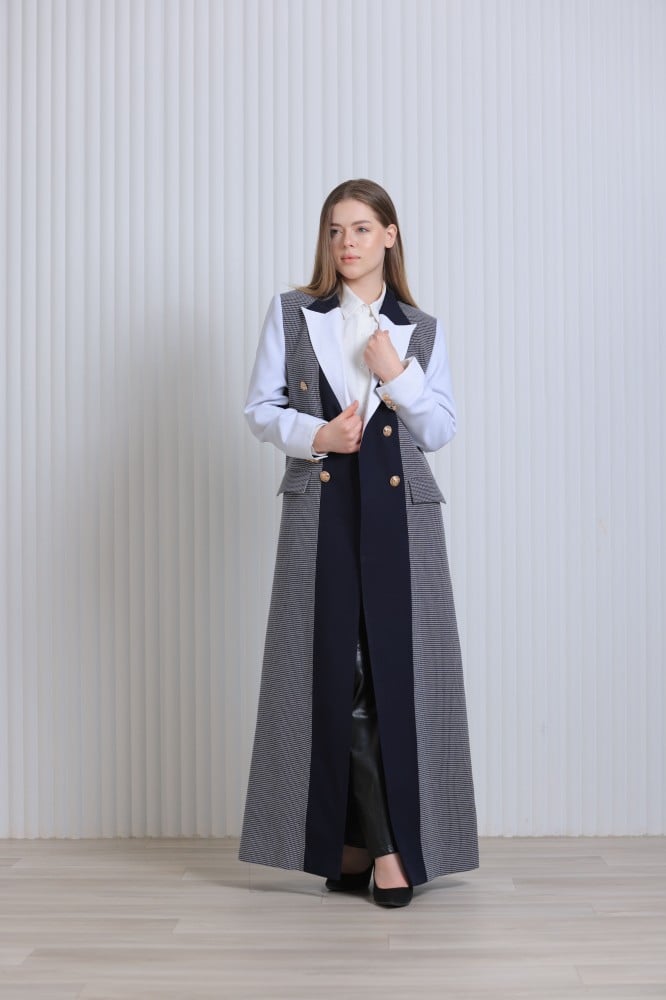 عباية بليزر باللون الازرق المخطط والاف وايت
