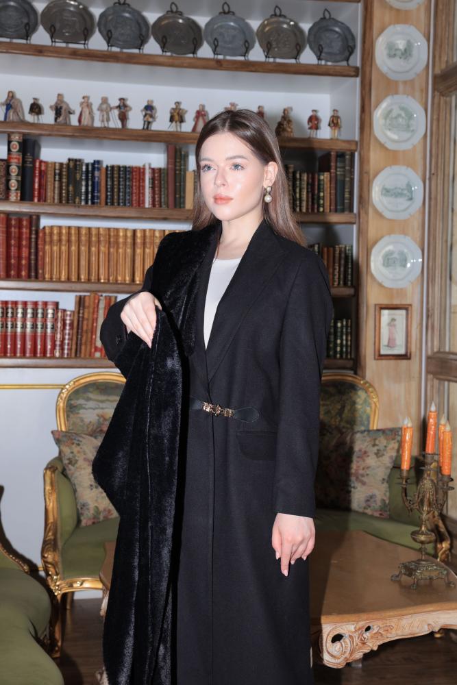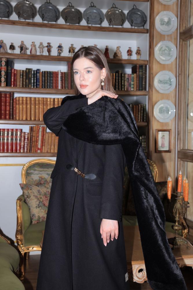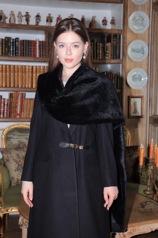 أنيقة بقصة عصرية بقماش الجوخ مع فرو فاخر يوضع على الكتف باكثر من طريقه مبطنة بقماش البونجيه مع خياطة داخلية وجيوب امامية و فتحة من الخلف و كتافات اسفنج