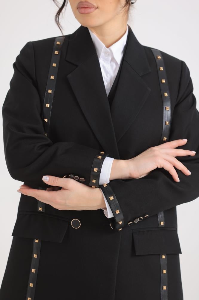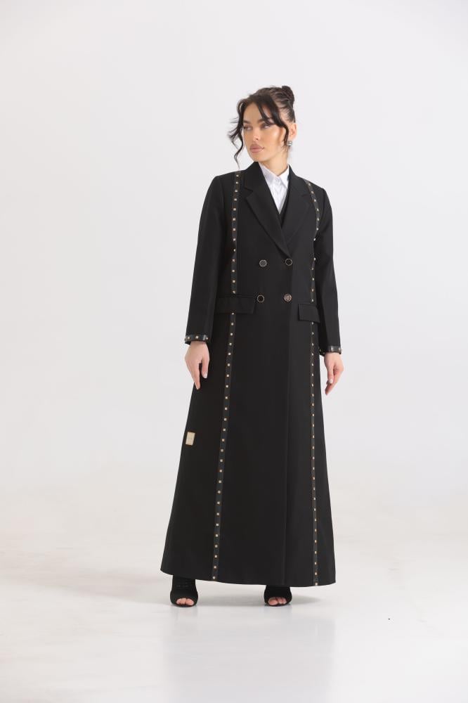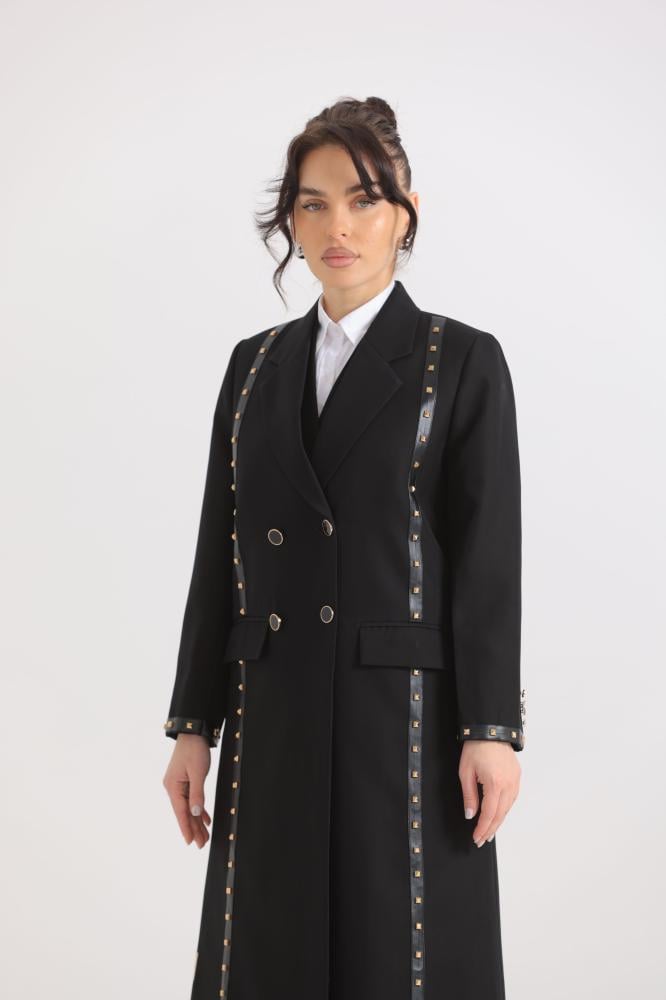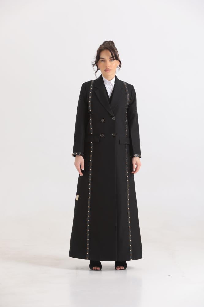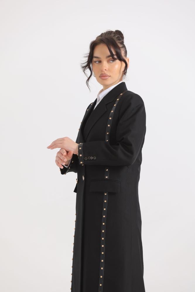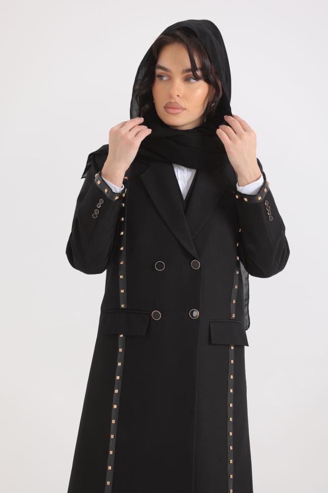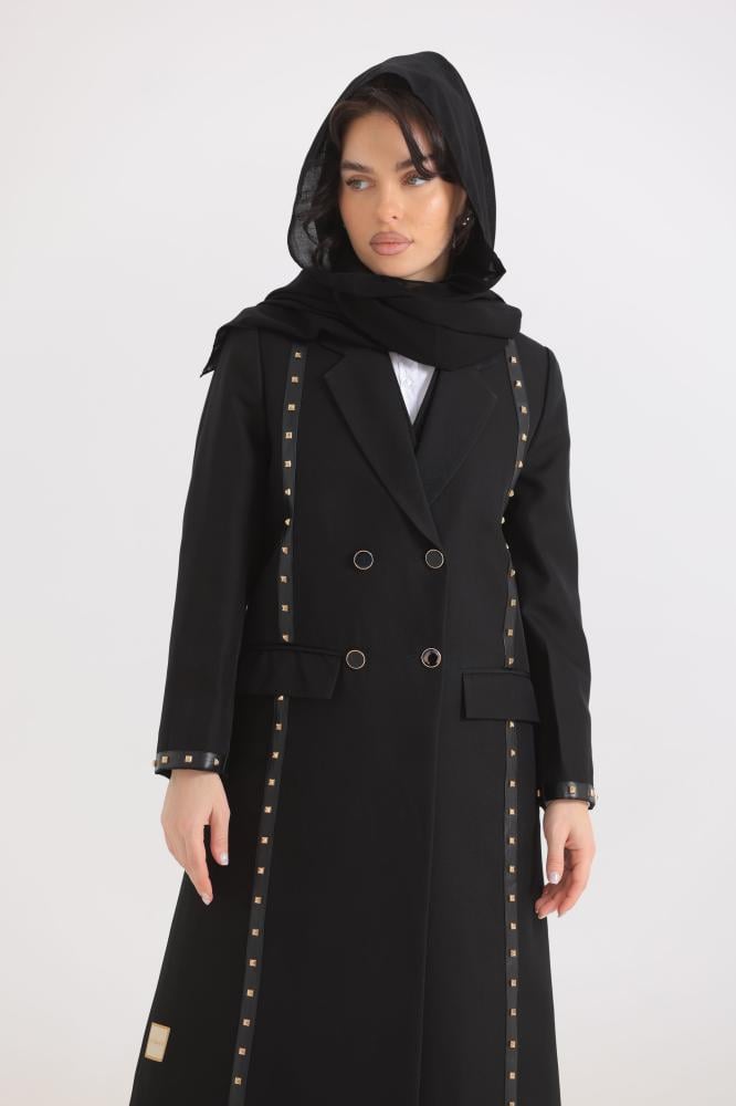 عباية بليزر باللون الاسود بزيج جلد اسود مع ذهبي
