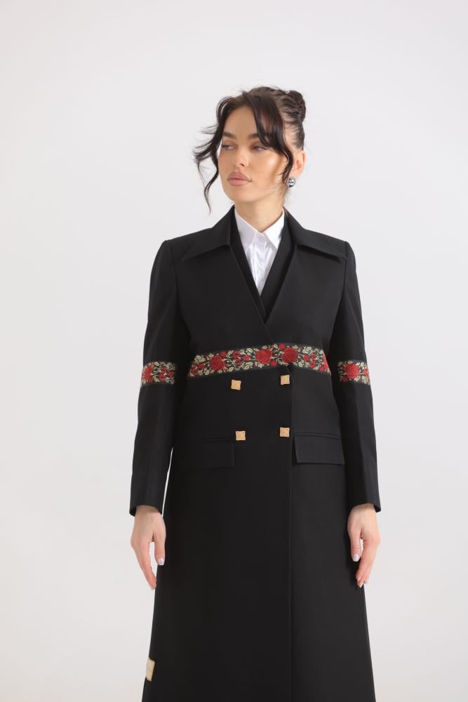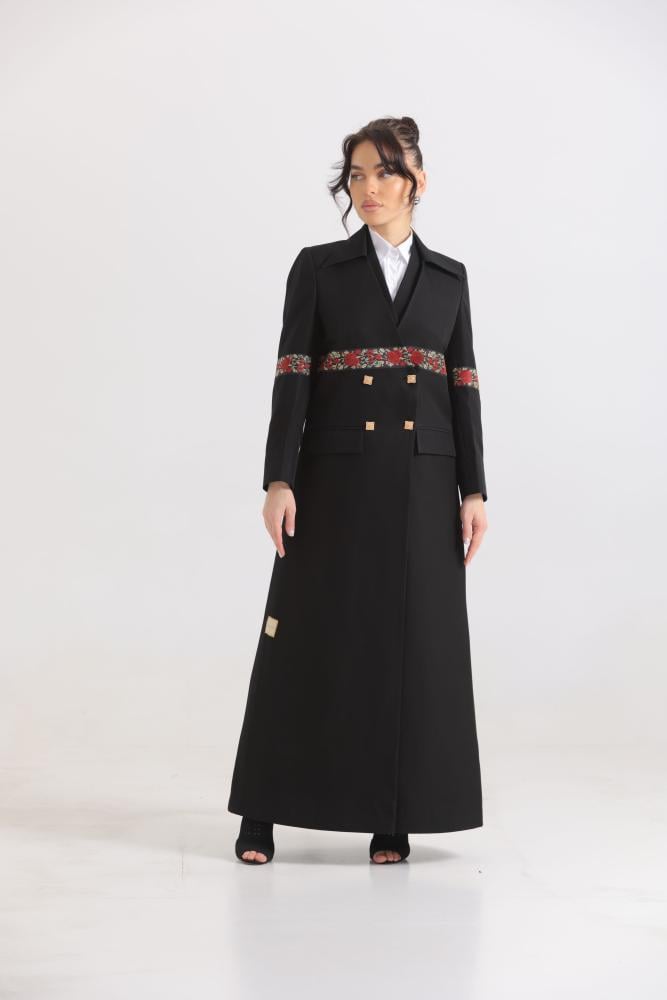 عباية بليزر باللون الاسود بزيج ورد احمر